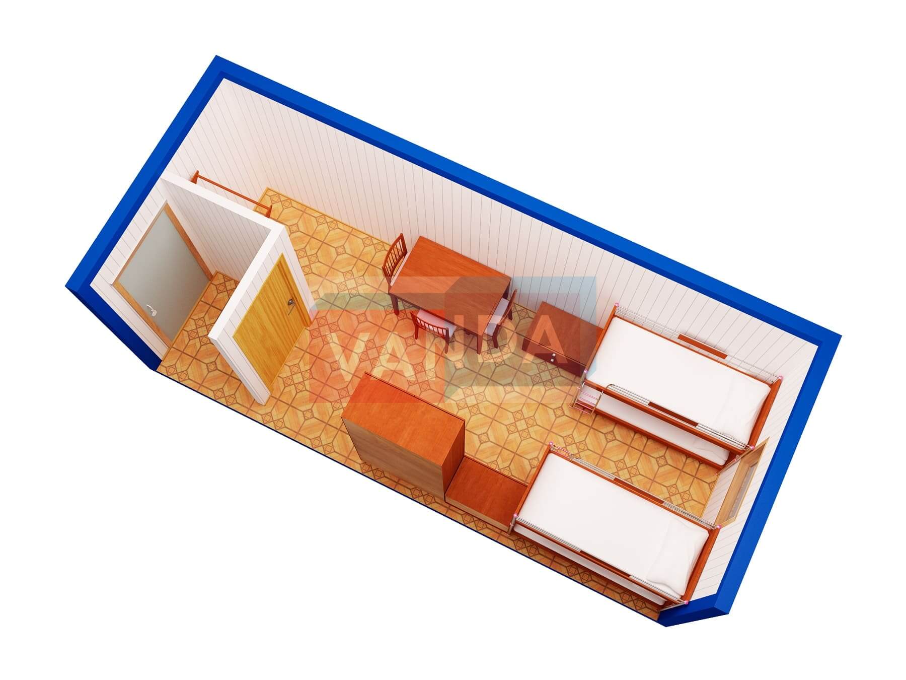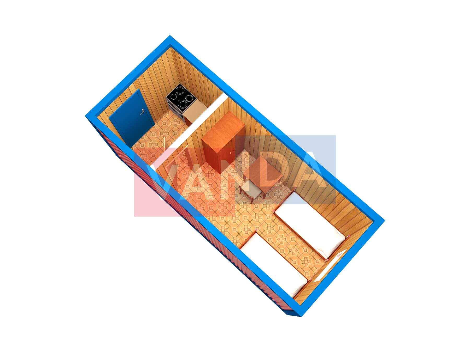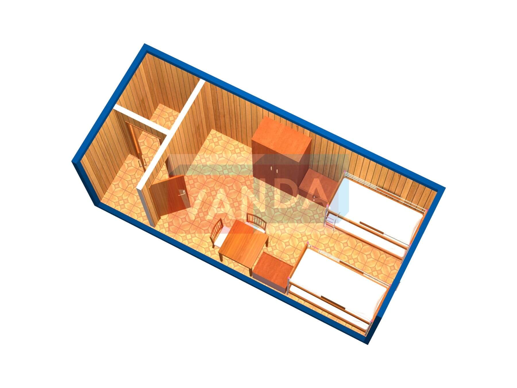 Строительная бытовка со сборкой на месте №4 (вариант 3) 5.8x2.2 12.76 Вагонка деревянная Имитация бруса 140 500 р. Уточняйте у менеджера