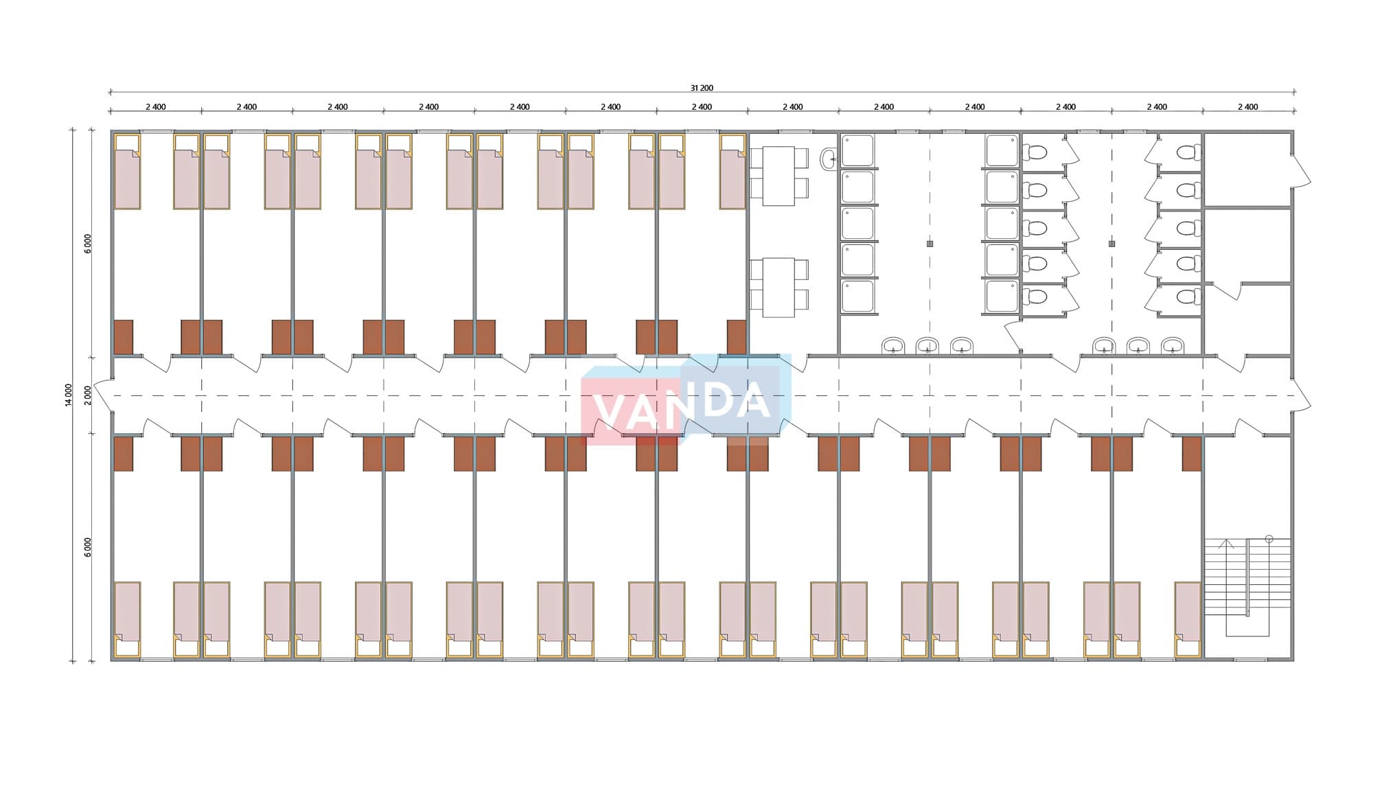 Проект вахтового посёлка 14.0х31.2 14.0x31.2 873.6 OSB 9 мм. Оцинкованный профлист 20 640 000 р. Уточняйте у менеджера